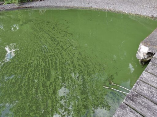 A harmful algal bloom that occurred on the southwest shores of Cayuga Lake on July 13th, 2019.
