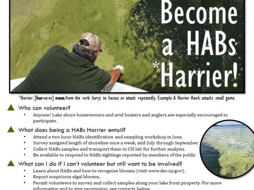 For more information about HABs, please visit CSI’s Harmful Algal Bloom Monitoring page or the NYSDEC HABs information page. If you have health concerns related to HABs, please contact your local health department or the NYS Department of Health at harmfulalgae@health.ny.gov.